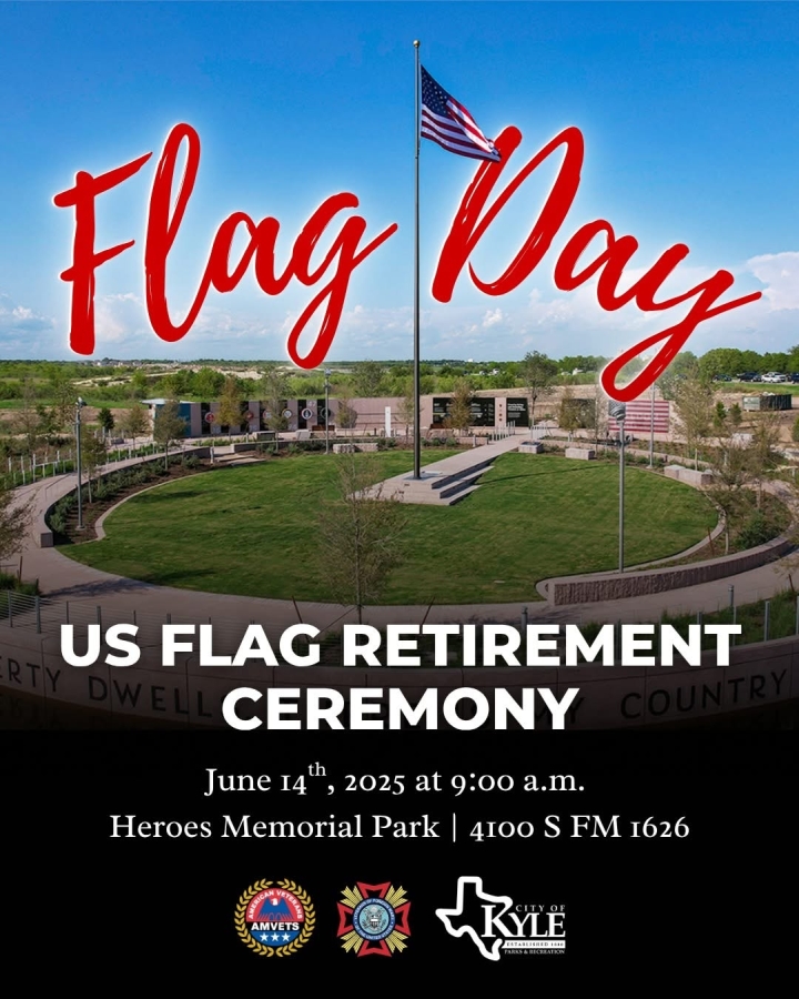 at 9am on Flag Day, June 14th, at the Heroes Park in Kyle located