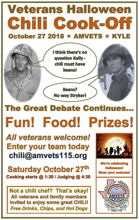 27, 2018 – Our annual Post Chili Cook-Off on October 27, 2018