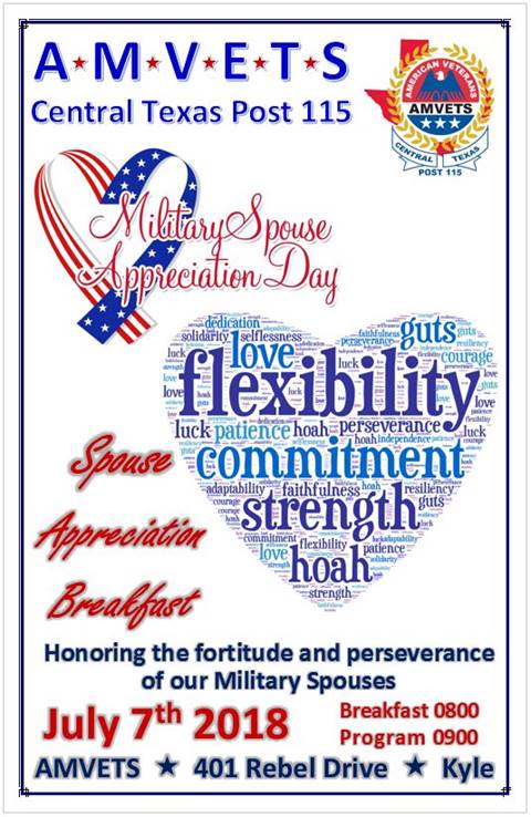 Spouse Appreciation Breakfast July 7, 2018 – Post TX115 held its first Spouse