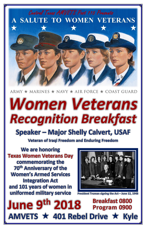 Women Veterans Recognition Breakfast June 9, 2018 – Post TX115 held its first annual Women Veterans Recognition